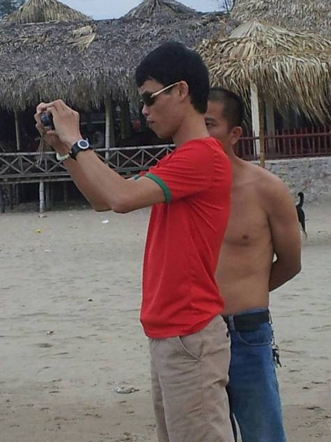 | Hình ảnh tình tứ của Hiệp "Gà" với người yêu mới mà anh gọi là "vợ" trên bãi biển Thanh Hóa. |