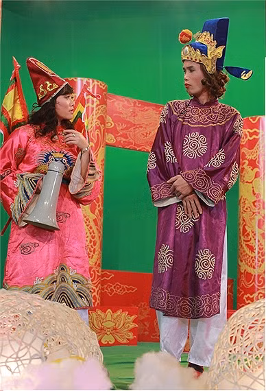 | Ở Táo Quân của VTV, Vân Dung vào vai Táo Dân sinh, thì ở Đài VTC, chị vào vai Táo Văn hóa. |