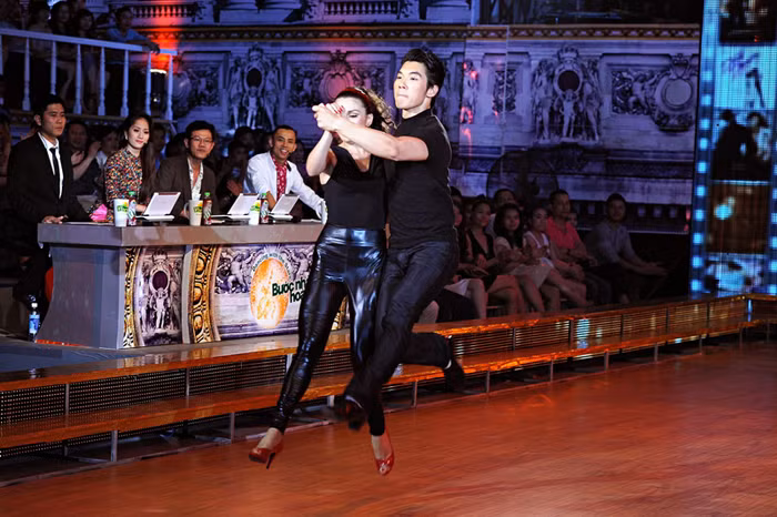 | Trong các đêm thi Bước nhảy hoàn vũ, Khánh Thi luôn diện các trang phục hết sức gợi cảm - thậm chí, còn gợi cảm hơn cả thí sinh trình diễn. |