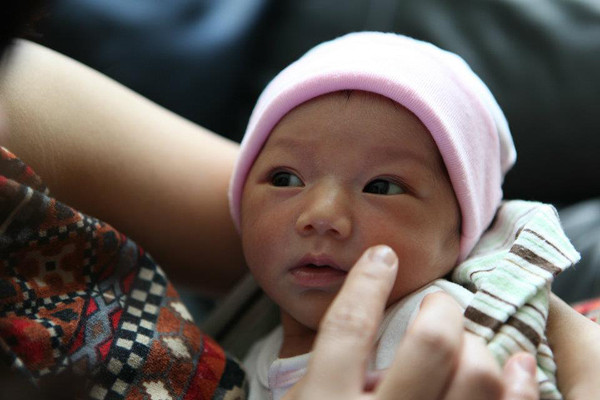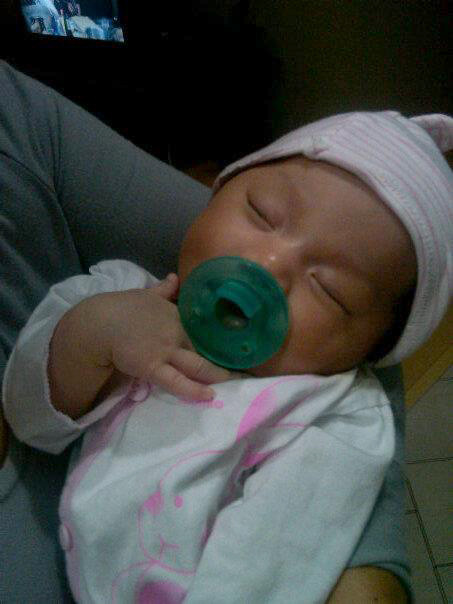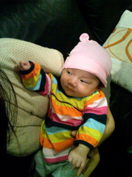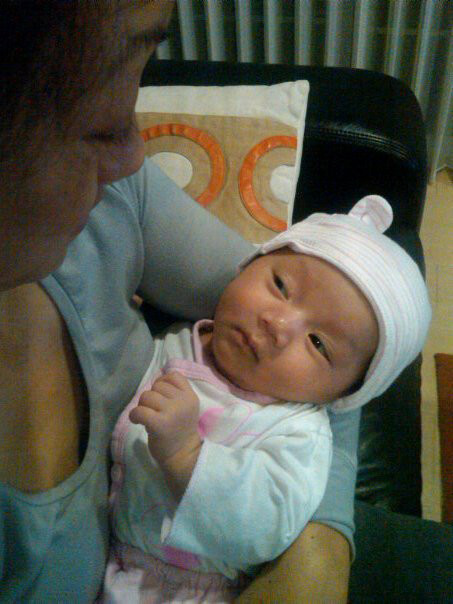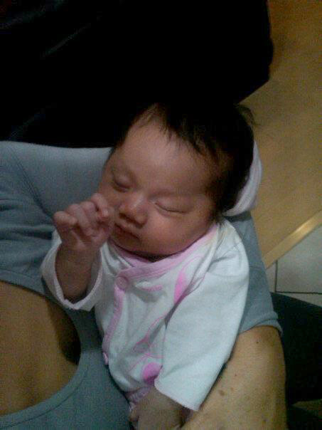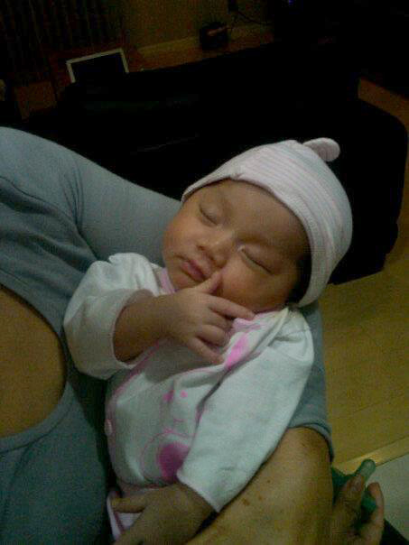 Bé Nala Yến Đoàn đã hơn 1 tháng tuổi, rất ngộ nghĩnh và đáng yêu. Cô công chúa đầu lòng của Hà Trần có thói quen đưa tay chồng cằm khi ngủ.