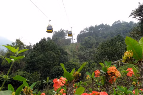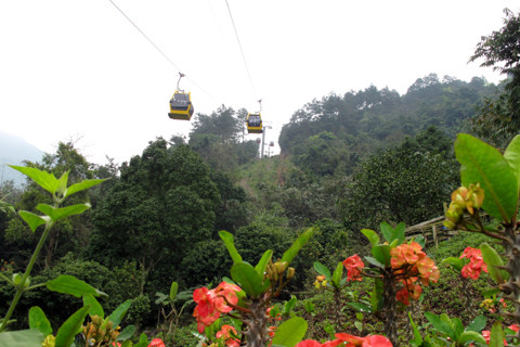 | Du khách xếp hàng ngay ngắn lên cáp treo. |