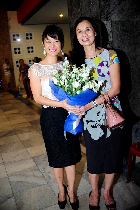 | Tối 20/10/2013, tại đêm nhạc "Mùa thu của Phương" của nữ ca sĩ Thu Phương sau 10 năm vắng bóng, Hồng Nhung khá sexy với chiếc áo ren trắng, cô mang hoa đến chúc mừng Thu Phương. |