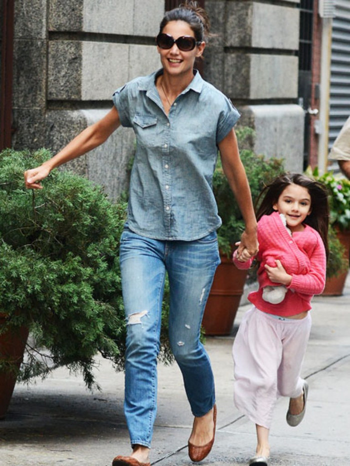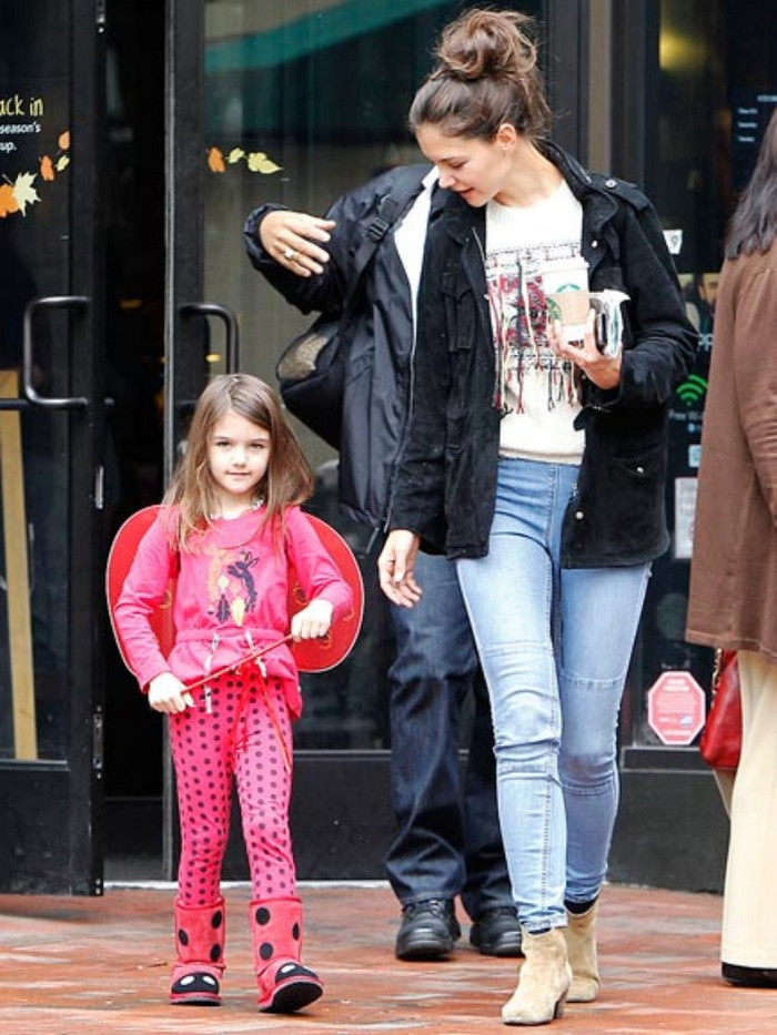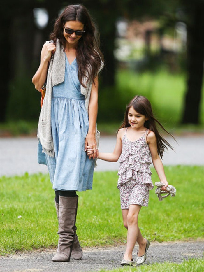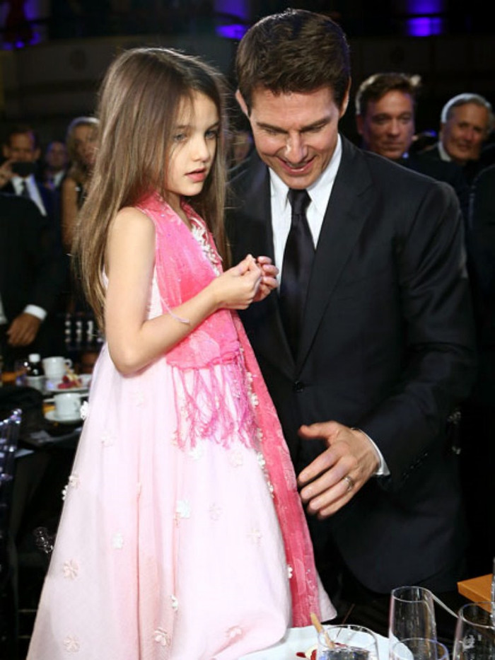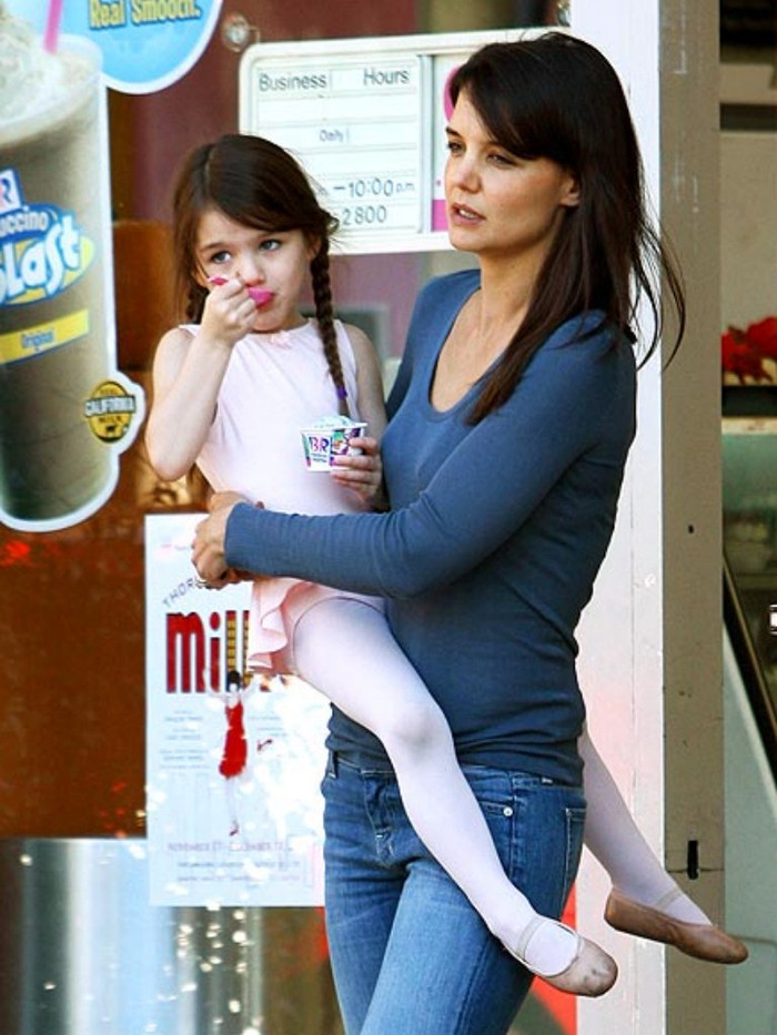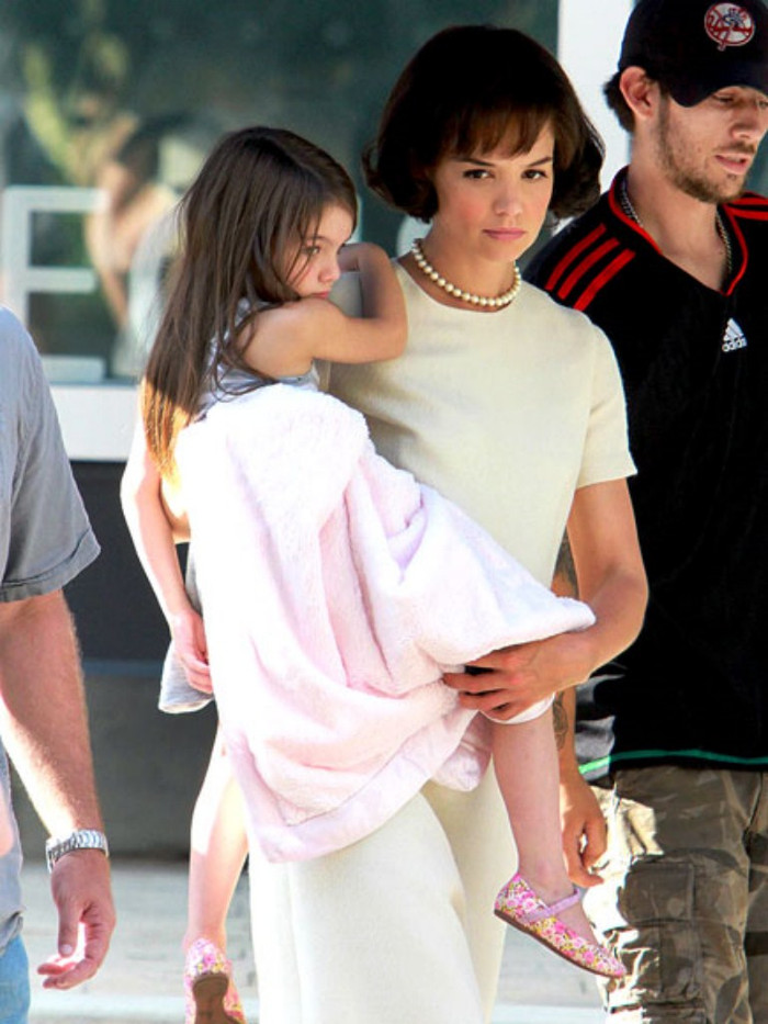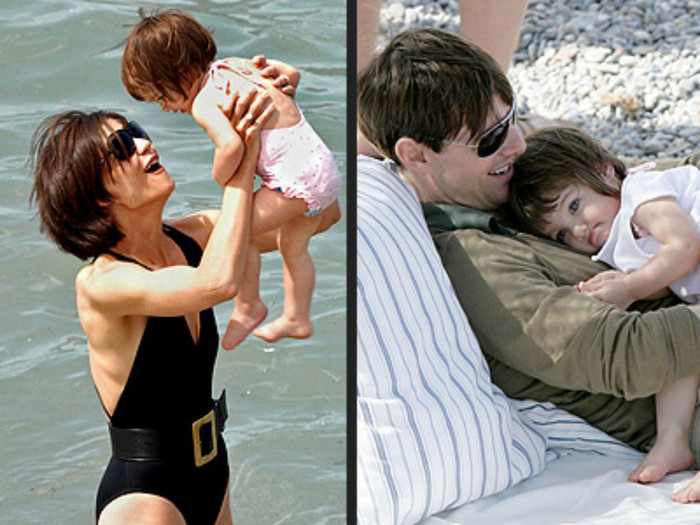 | Katie Holmes và tài tử Tom Cruise hẹn hò từ năm 2005 và nhanh chóng đi đến hôn nhân chỉ sau 17 tháng yêu nhau. Tháng 4 năm 2006, cô công chúa bé nhỏ, kết tinh tình yêu của 2 người, Suri Cruise đã ra đời. |