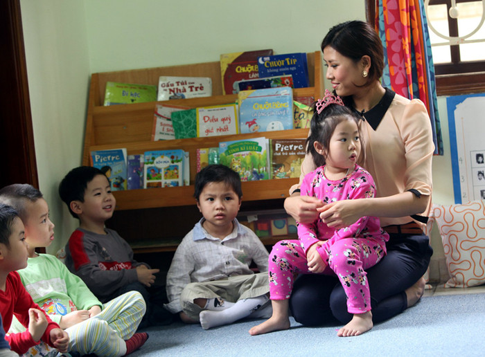 | Hoa hậu biển tỏ ra thích thích với vai trò mới - một cô nuôi dạy trẻ. |