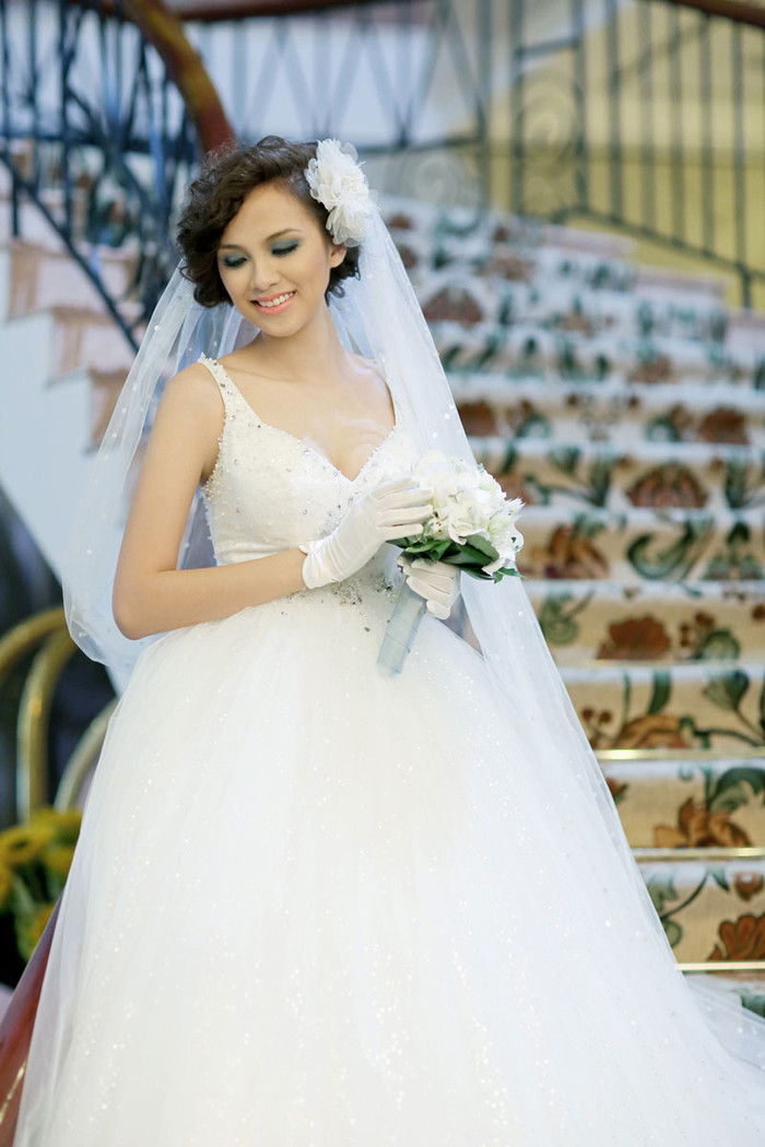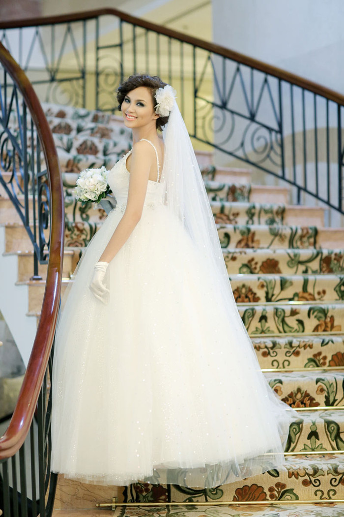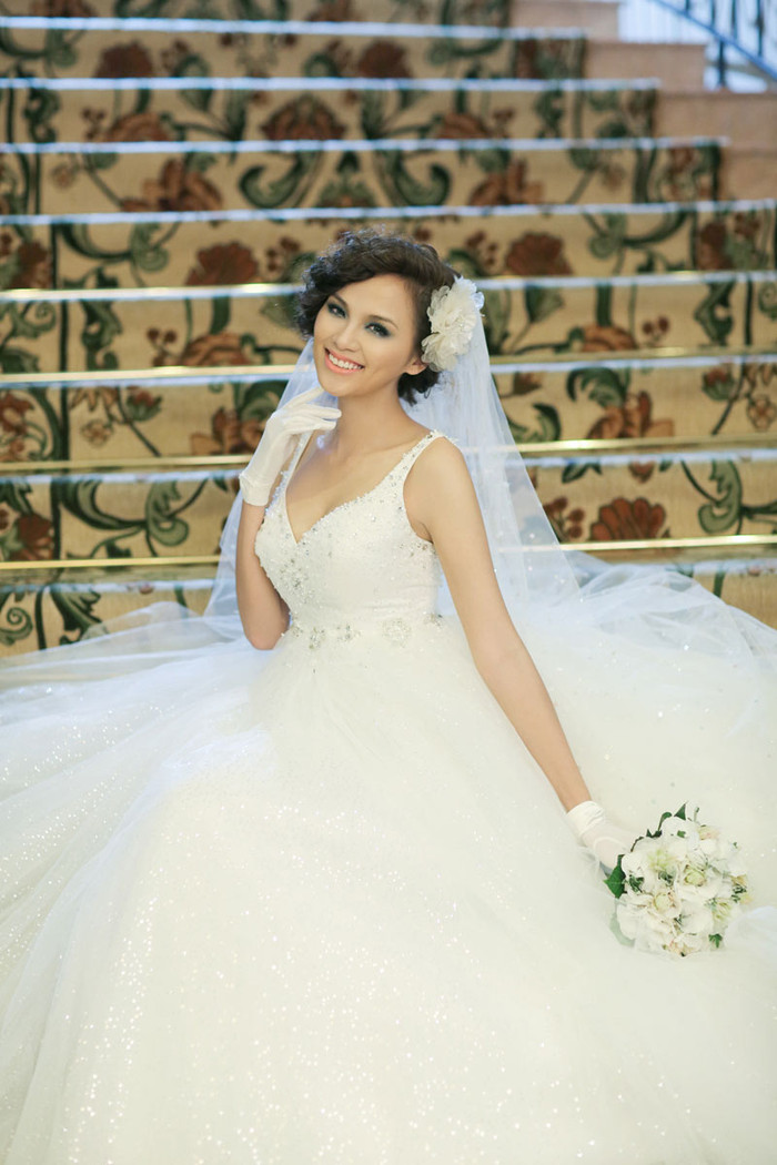 Hoa hậu Diễm Hương làm cô dâu 'trắng muốt'