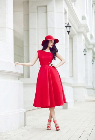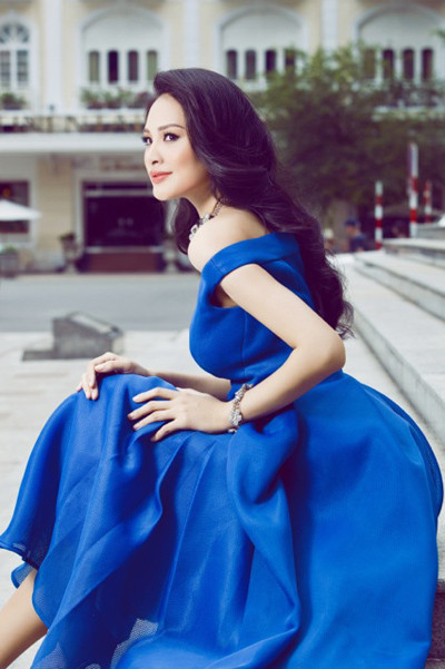 Người đẹp tự tin khi làm mẫu cho sưu tập váy mới của nhà thiết kế Lê Thanh Hòa.