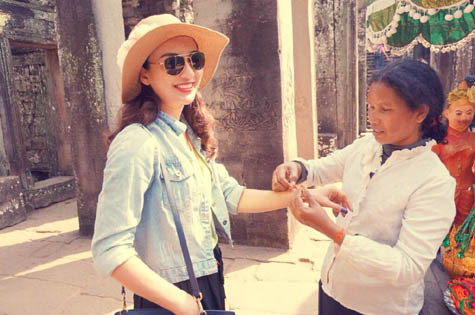 | Việc lựa chọn Campuchia làm điểm xuất ngoại đầu xuân lần này ngoài việc cầu may mắn cũng là dịp mà cô thỏa mãn đam mê du lịch của một hoa hậu du lịch. |