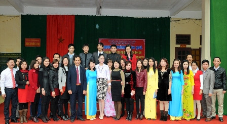 | Ngọc Anh chụp ảnh kỉ niệm với các thầy cô giáo |