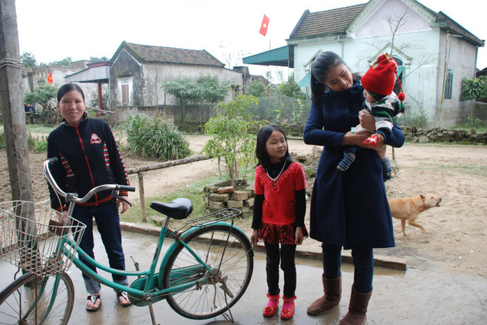 | Ngọc Hân, Nguyễn Thị Loan trao các phần thưởng hết sức ý nghĩa cho các em nhỏ nghèo xã Nghi Thái, Tp. Vinh. |