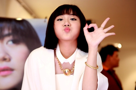 | Nhận xét của họa sĩ không khiến Văn Mai Hương chạnh lòng, cô tạo dáng rất nhí nhảnh |