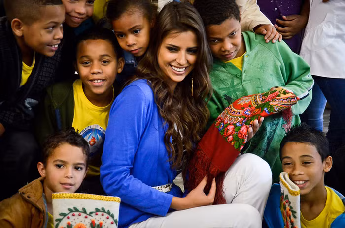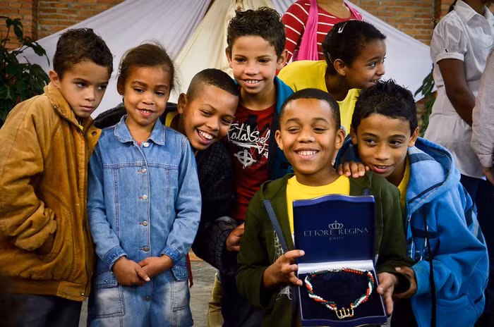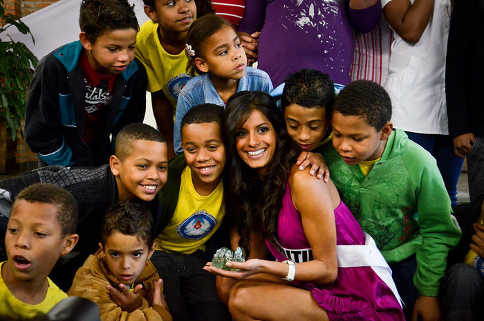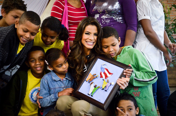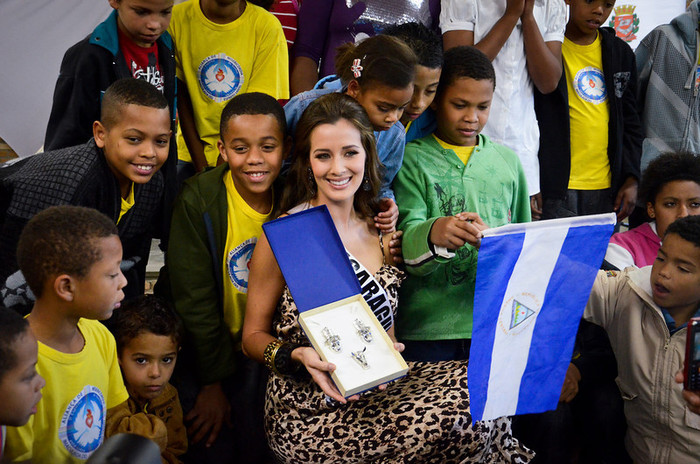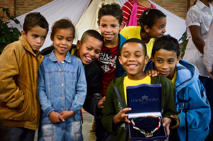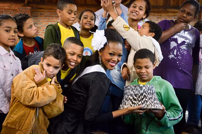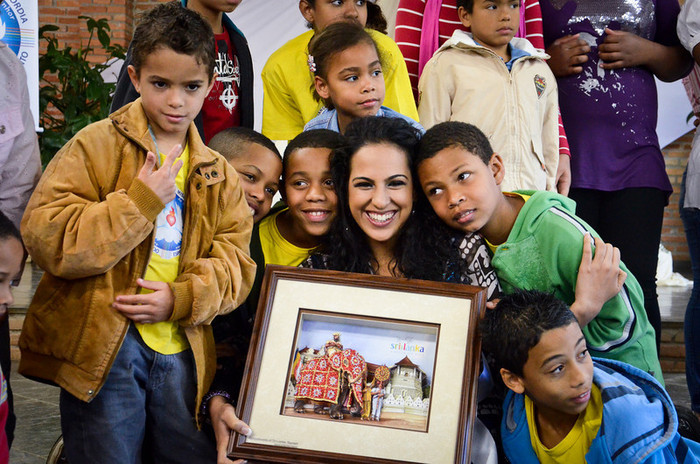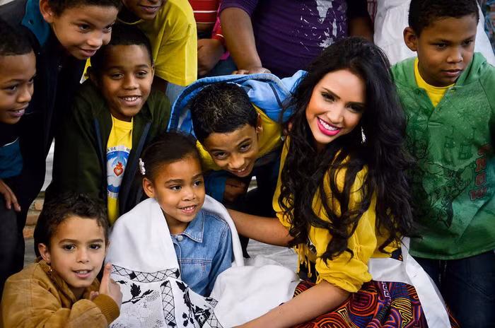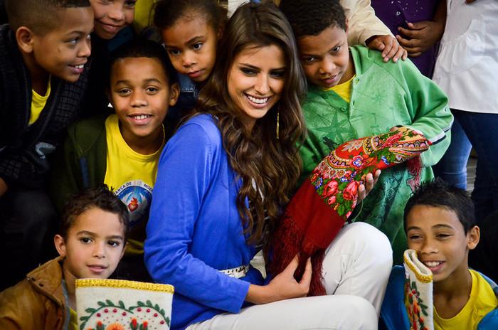 | Cô tặng các em nhỏ nghèo Brazil món quà do tự tay mình làm. |