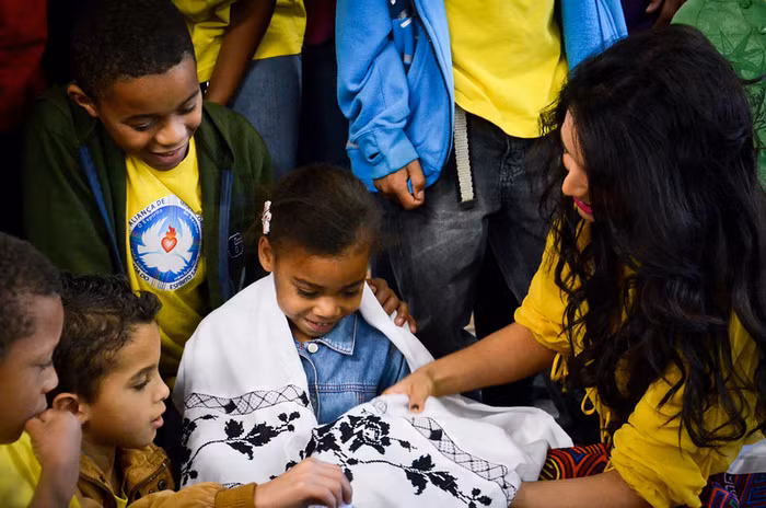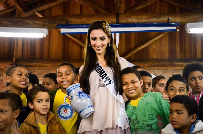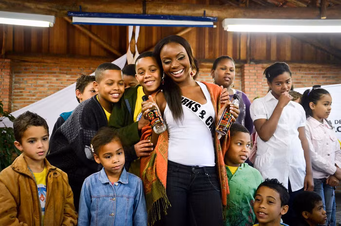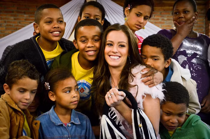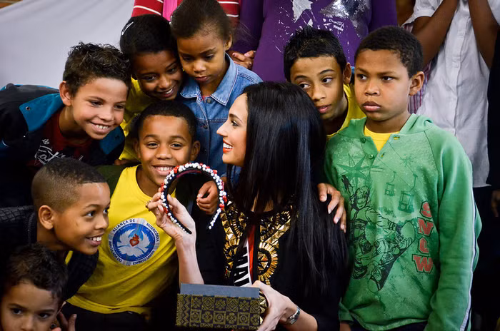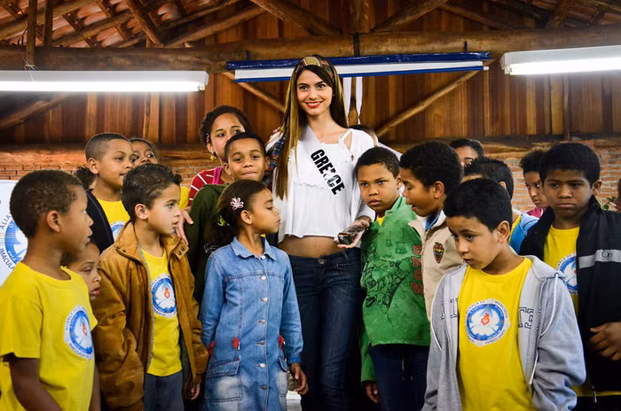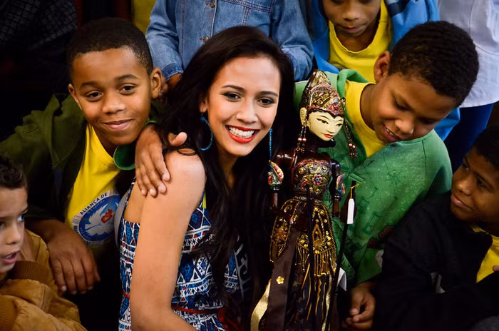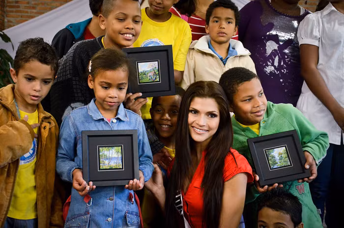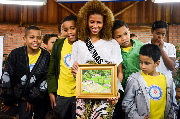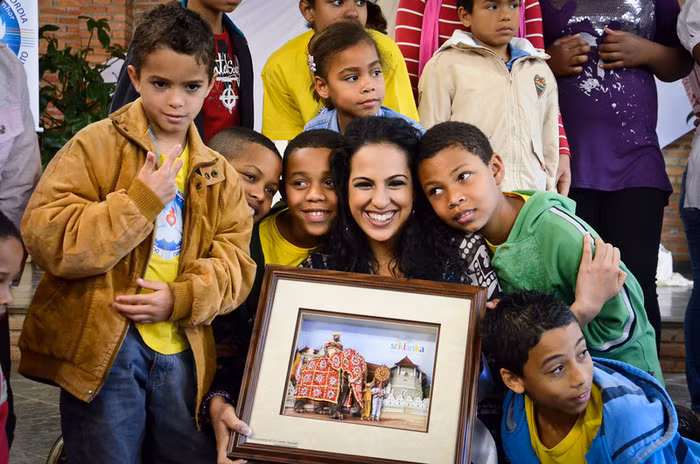 | Cô tặng các em nhỏ nghèo Brazil món quà do tự tay mình làm. |