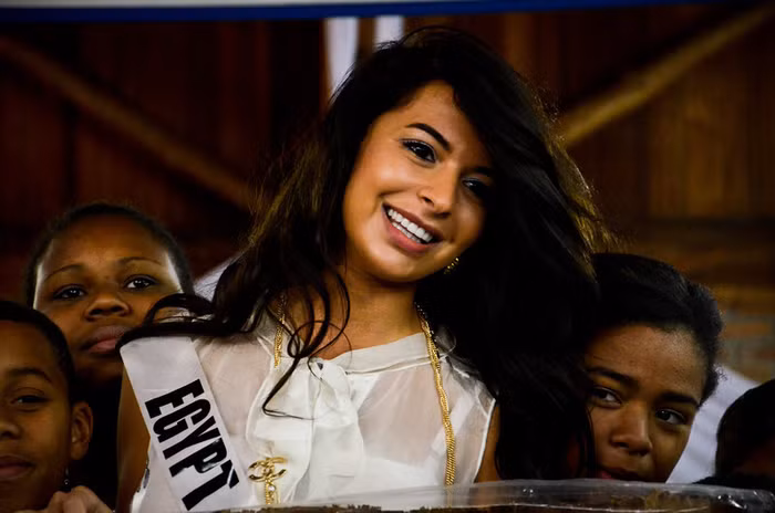 | Hoàng My chọn mặc chiếc áo bà ba màu đỏ nhân dịp chào mừng kỷ niệm Quốc khánh 2/9 ở Việt Nam. Có thể thấy so với các hoa hậu khác lộ trang điểm khá đậm, Hoàng My sở hữu nụ cười tươi và nét mặt tự nhiên như không son phấn. |