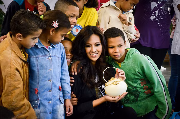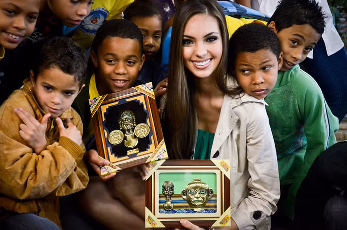 | Những hiện vật được các người đẹp khắp thế giới đem đến trao tặng cho các em nhỏ |