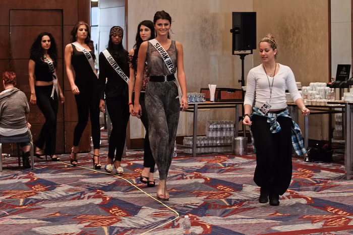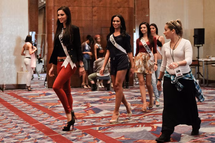 | Tại buổi tập dượt này các thí sinh chủ yếu được hướng dẫn đi catwalk. |