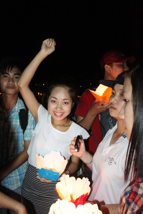 Hoàng Quyên và FC cũng tham gia lễ hội thả đèn hoa đăng và gửi đi những điều ước tốt đẹp trên sông Hoài và quanh Chùa Cầu.