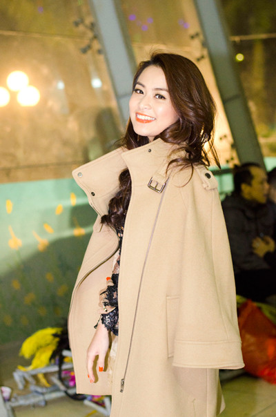 | Cô vui vẻ chụp hình với người hâm mộ trước khi ra về. |