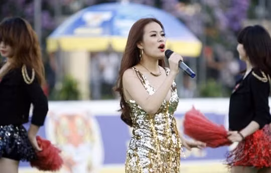 | Sau đó không lâu, nữ ca sĩ bỏ áo khoác ngoài và xuống sân biểu diễn một bài hát sôi động |