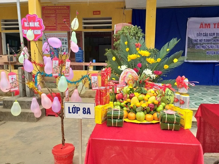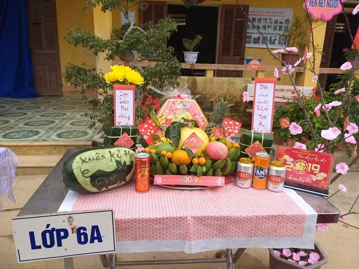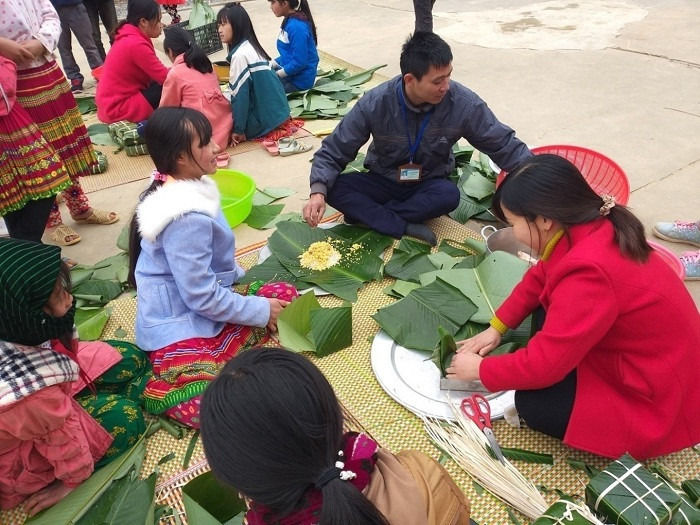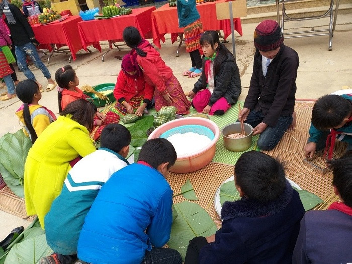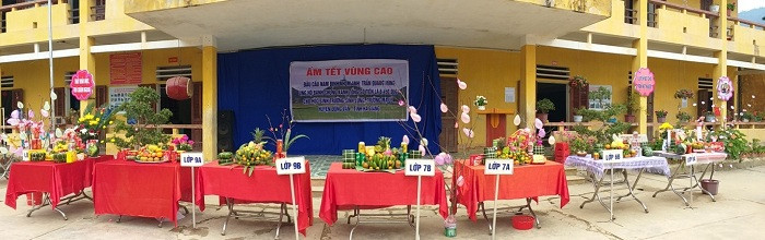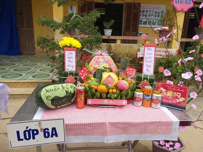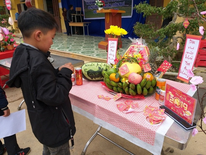 Vì vậy, nhà trường đã phối hợp với đoàn thiện nguyện trong chương trình “Ấm Tết vùng cao” tổ chức cho các em hội thi “Trang trí mâm ngũ quả và trải nghiệm gói bánh chưng mừng xuân Kỷ Hợi 2019” để các em hiểu hơn về văn hóa Tết cổ truyền của Việt Nam.