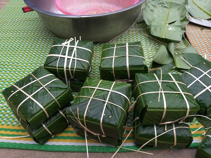 Sau phần thi trang trí mâm ngũ quả, các em được tham gia trải nghiệm gói bánh chưng với sự hướng dẫn của các thầy cô giáo và sự giúp đỡ của các chú chiến sĩ đồn Biên phòng 169.