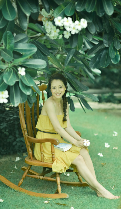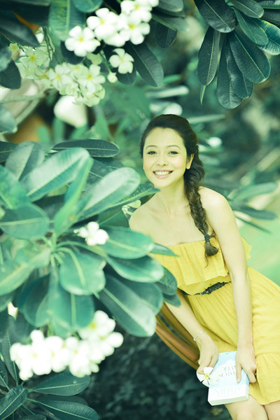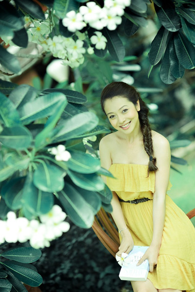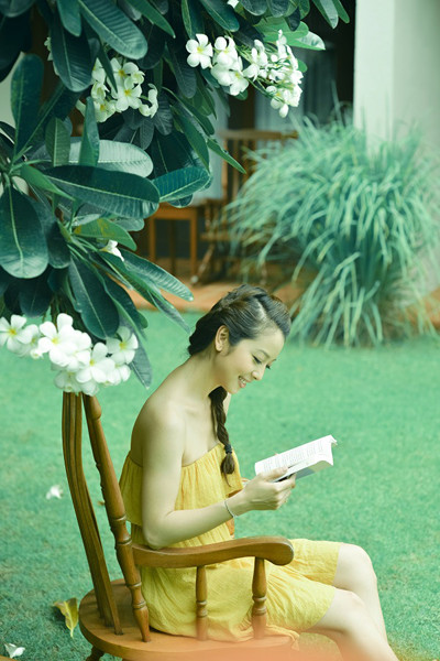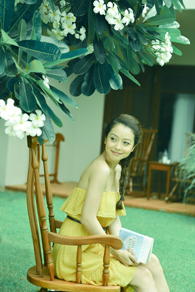 Hoa hậu có những phút thảnh thơi khi đắm mình giữa thiên nhiên tươi mát trong dịp đi công tác tại Hội An.