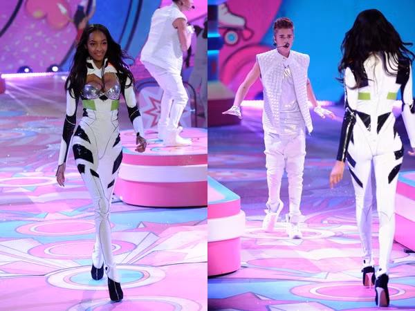 | Justin Bieber biểu diễn bên cạnh Jourdan Dunn tại Victoria's Secret show năm 2012. |