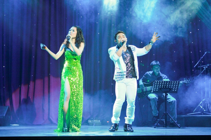 | Trong liveshow của Cao Mỹ Kim còn có mặt của Bùi Caron, thí sinh “phe Hà Hồ” trong gameshow Tiếng hát Việt. |