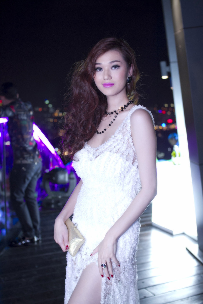 | Khánh My xuất hiện với chiếc váy trắng quyến rũ. |