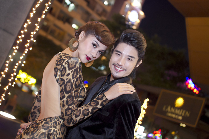 | Cô chụp hình cùng Hồ Vĩnh Anh. |