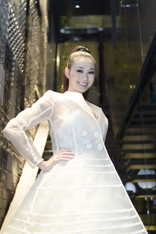(GDVN) - Xuất hiện tại một sự kiện tối qua, Khánh My thu hút mọi ánh nhìn với chiếc đầm trắng gợi cảm và mái tóc buộc cao gọn gàng.