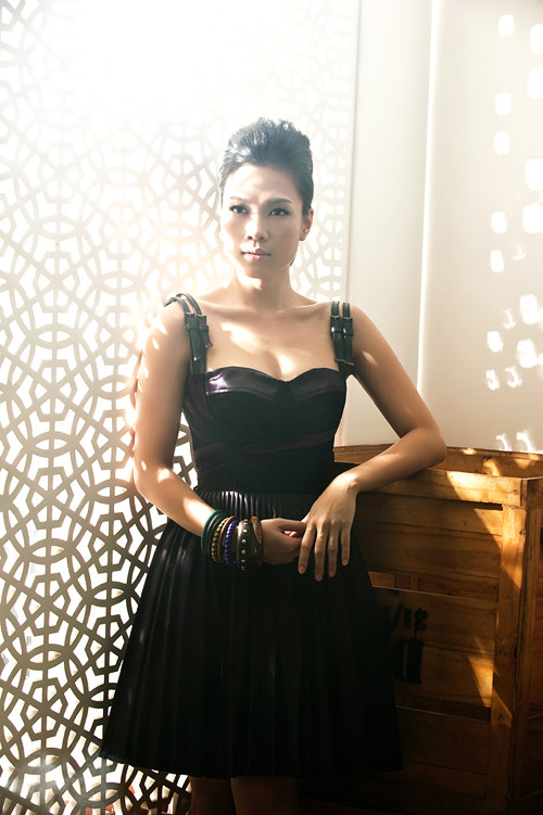 | Bới tóc cao, để lộ gương mặt đẹp có chút "bướng bỉnh", Mỹ Tâm tạo dáng lạnh lùng, kiêu sa nhưng vẫn toát lên sự quyến rũ. |