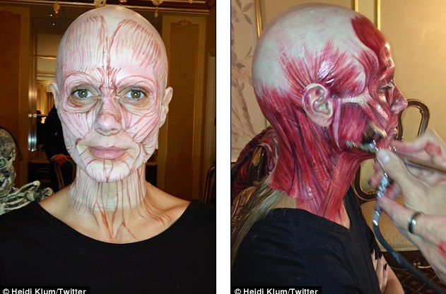 | Quá trình trang điểm khuôn mặt của Heidi từ người sang... ma. |