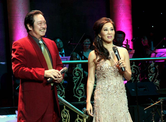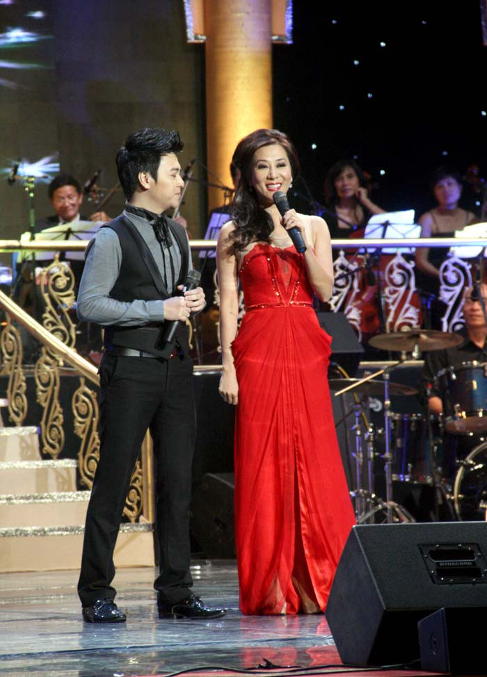 (GDVN) - MC Kỳ Duyên gợi cảm với váy xẻ sâu bên cạnh Chánh Tín lịch lãm, hóm hỉnh khi cả hai là MC chương trình Nhật ký đời tôi của Chế Linh tối 9/6.