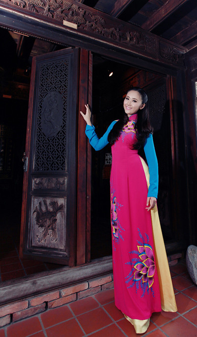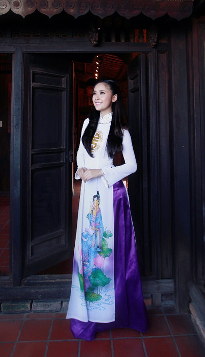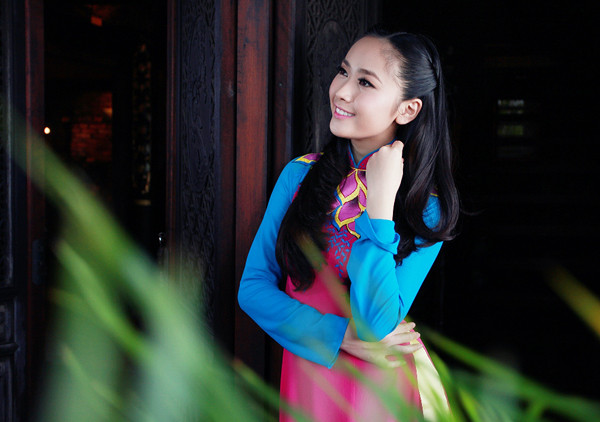 | Trong loạt hình mới, Lê Nhã Uyên diện nhiều mẫu áo dài của nhà thiết kế Minh Châu. Cô khoe nét đẹp đằm thắm, u hoài trong khung cảnh tĩnh lặng của ngôi nhà cổ. |