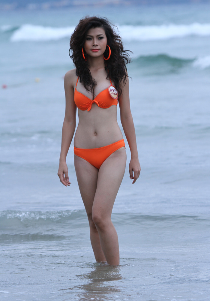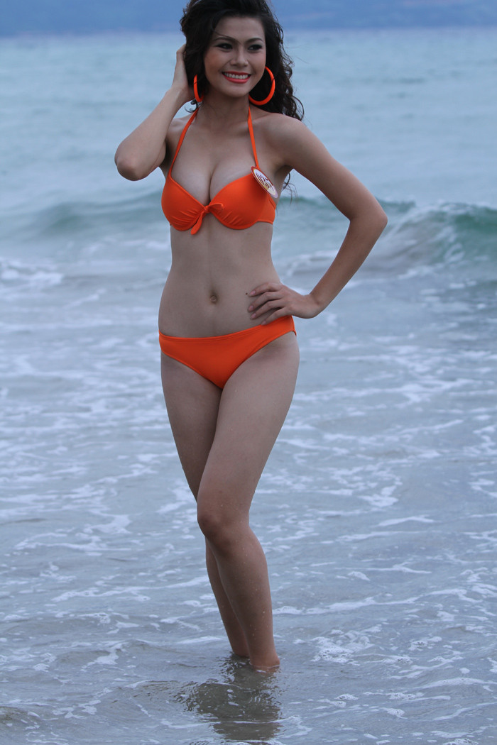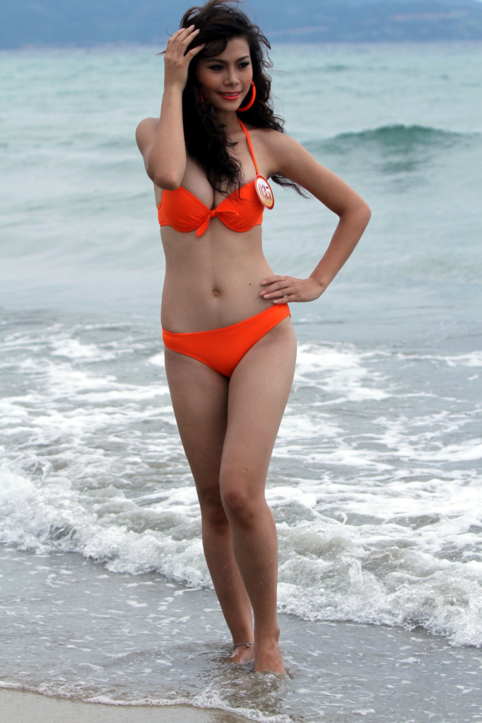 (GDVN) - Thí sinh Lê Phúc Hồng Châu sinh năm 1993 là sinh viên Trường Đại học Công nghiệp TP. HCM. Hồng Châu mang SBD 035, cao 1m72, cân nặng 56, chỉ số 3 vòng của cô lần lượt là 85 - 64 - 91. >>Bình chọn Hoa hậu Biển 2012