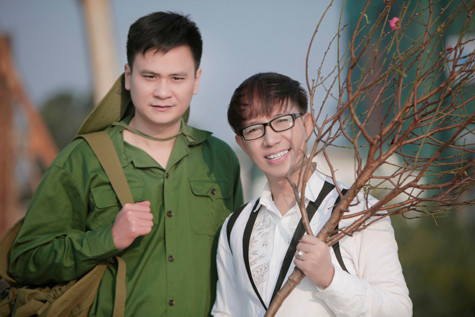 | Trong MV năm ngoái, diễn viên Công Dũng đóng vai 'chồng' của Long Nhật còn trong năm 2014, anh trở thành chú bộ đội trở về thăm nhà |
