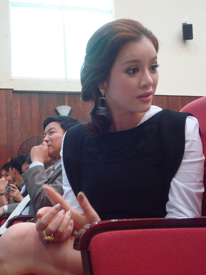 | Lý Nhã Kỳ tranh thủ trả lời phỏng vấn báo chí |