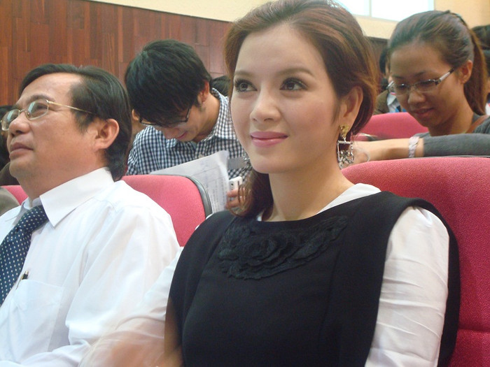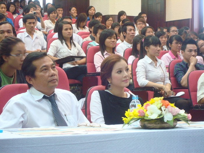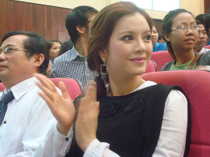 | Lý Nhã Kỳ chia sẻ cảm xúc của mình với các bạn sinh viên |