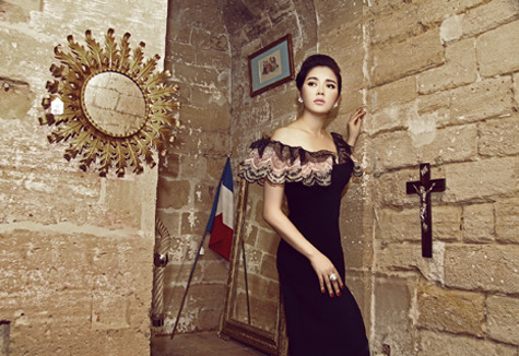 | Chiếc đầm trễ vai với lớp ren quyến rũ, tinh tế làm Lý Nhã Kỳ có vẻ đẹp đầy nữ tính và quyến rũ. |