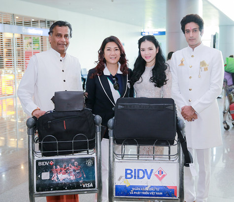 | Công chúa Thái Lan Mom Luang Rajadarasri Jayankura (áo đen) và đoàn phim “Cuộc đời Đức Phật” bao gồm nhà sản xuất phim người Ấn Độ Vinodh Seneviratne và diễn viên Gagan Malik, người đóng vai Đức Phật tới thăm Việt Nam |