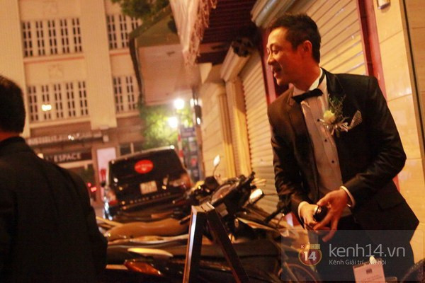 | Cô dâu Hồng Nhung cũng đã thay váy cưới bằng trang phục khác giản dị hơn. MC Anh Tuấn cũng yêu cầu khách mời không chụp ảnh trong bữa tiệc này. |