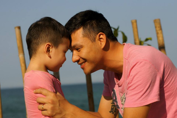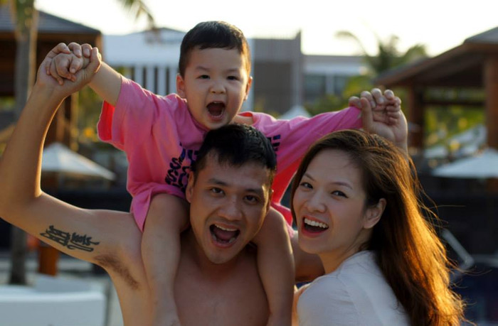 | Mặc dù rất bận rộn nhưng đạo diễn Khải Anh vẫn tranh thủ thời gian rảnh để chăm sóc vợ con |