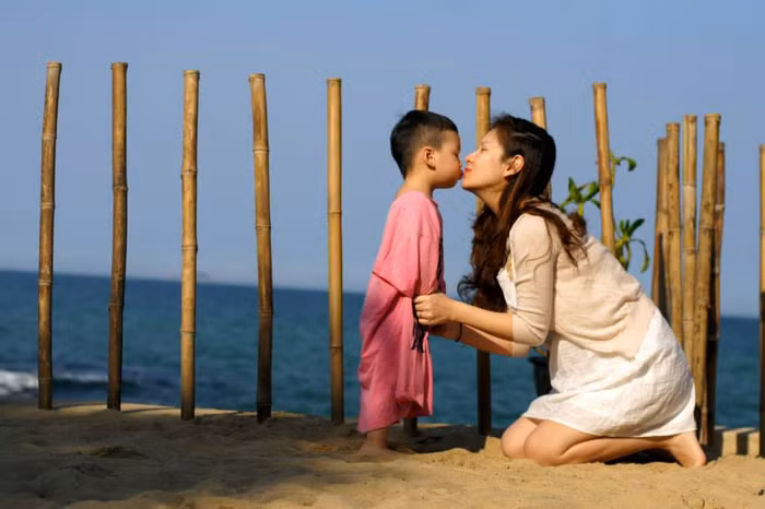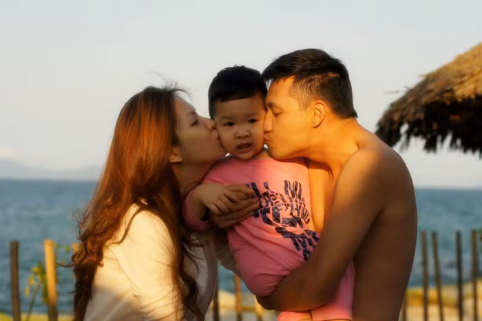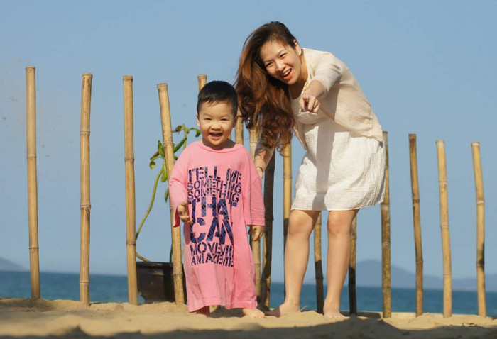 Bên bờ biển miền trung đầy nắng gió, cả gia đình Đan Lê đã cùng nhau vui đùa thỏa thích và trao nhau những nụ hôn ngọt ngào, hạnh phúc.