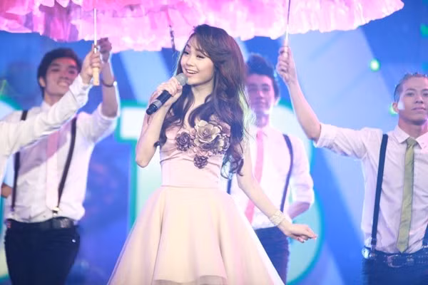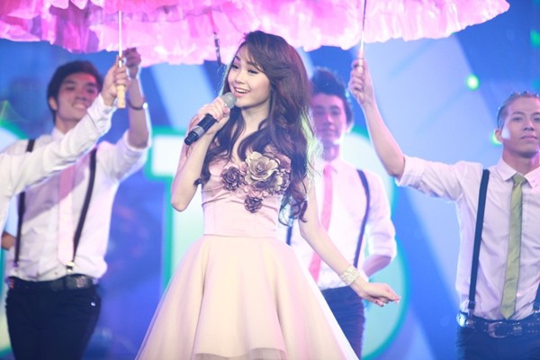 | Trong tiết mục biểu diễn solo, nữ ca sĩ thay bộ đầm thứ hai và vẫn thu hút bởi vẻ đẹp vô cùng rạng rỡ của mình |