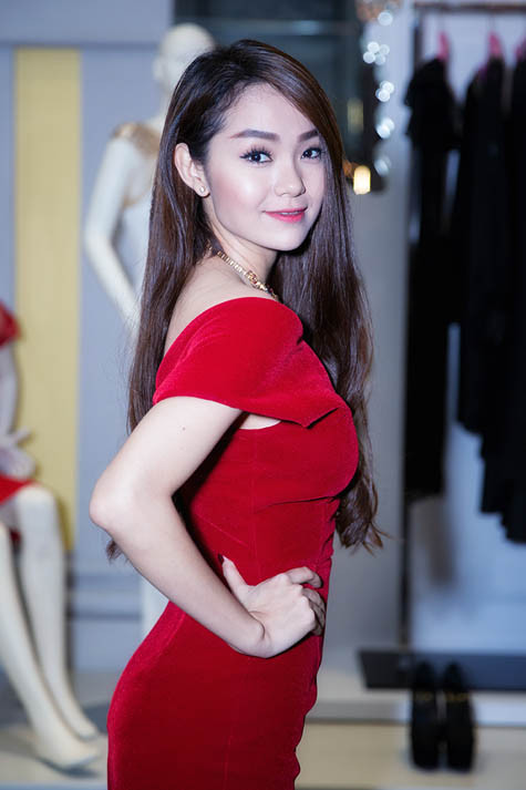 | Ca sĩ - diễn viên Minh Hằng diện đầm đỏ tôn làn da trắng ngần tại bữa tiệc chiêu đãi của nữ diễn viên Mùa hè lạnh Lý Nhã Kỳ. |