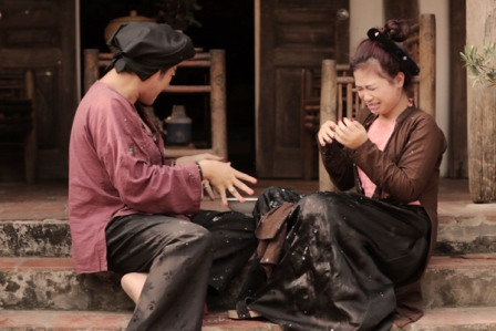 | Một cảnh trong phim giữa Minh Quân và Dương Hoàng Yến. Khi đóng cảnh này, Dương Hoàng Yến bị Minh Quân đánh không thương tiếc. |