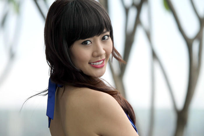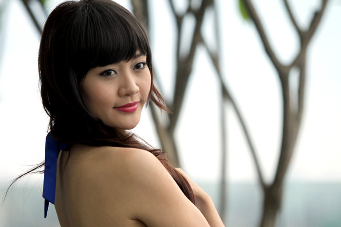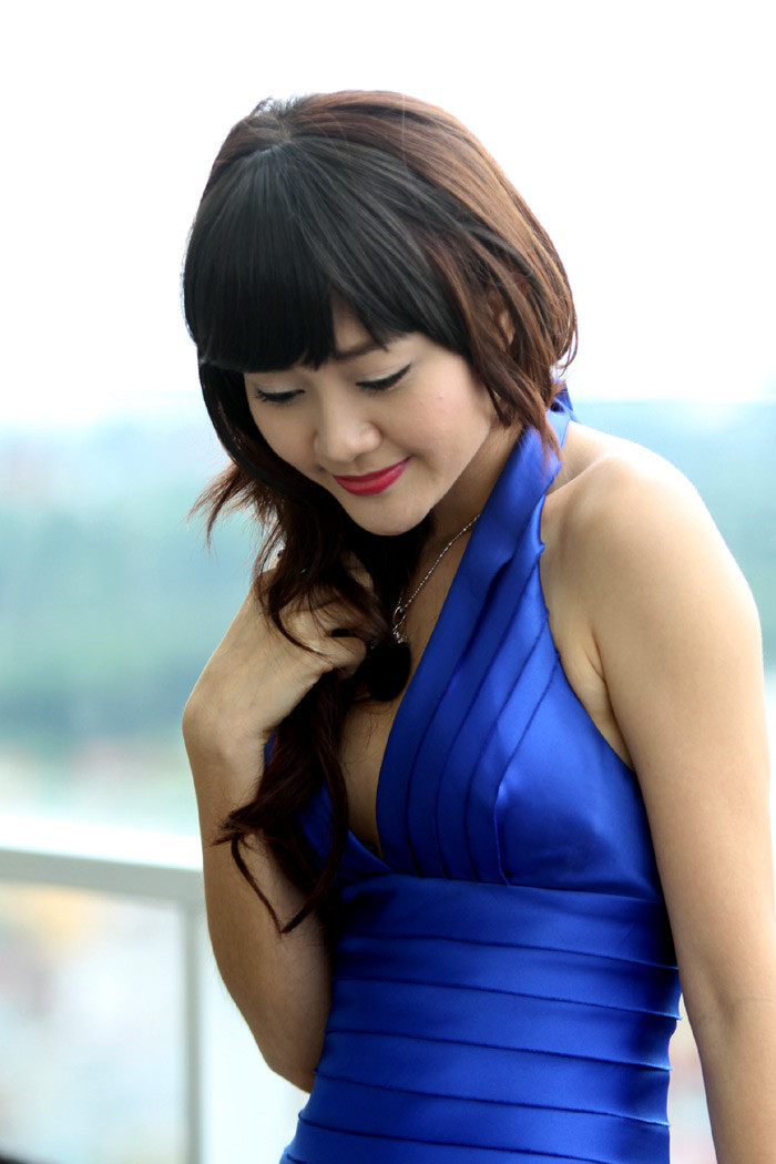 (GDVN) - Hoa khôi cuộc thi Hoa khôi Du lịch Ôtô Việt Nam - Miss Auto lần thứ nhất diện váy xanh, khoe vai trần gợi cảm trên phố Lý Thường Kiệt, Hà Nội.