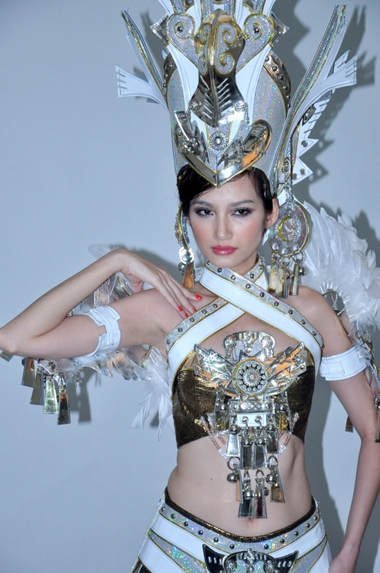 | Nhà thiết kế Long Dũng - người từng giúp Trương Nam Thành ghi điểm tại cuộc thi Manhunt, hỗ trợ người đẹp một bộ trang phục lấy cảm hứng từ hình ảnh mẹ Âu Cơ. |