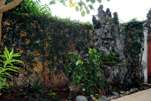 | Vào sâu bên trong là hành lang và bờ tường rêu xanh rất bắt mắt. Từ vị trí này, khách có thể ngồi thư giãn ngắm cây xanh và nghe tiếng chim hót. |