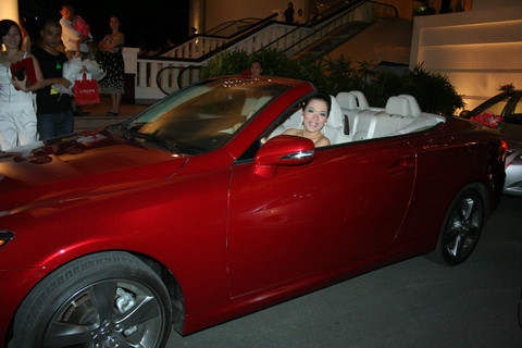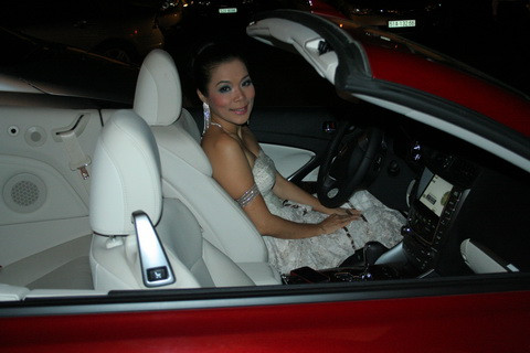 Tối 10/9, khi vừa kết thúc một sự kiện tại khách sạn White Palace, TP.HCM, chiếc Lexus mui trần màu đỏ rực rỡ của Mỹ Lệ lập tức là tâm điểm chú ý của người đi đường.